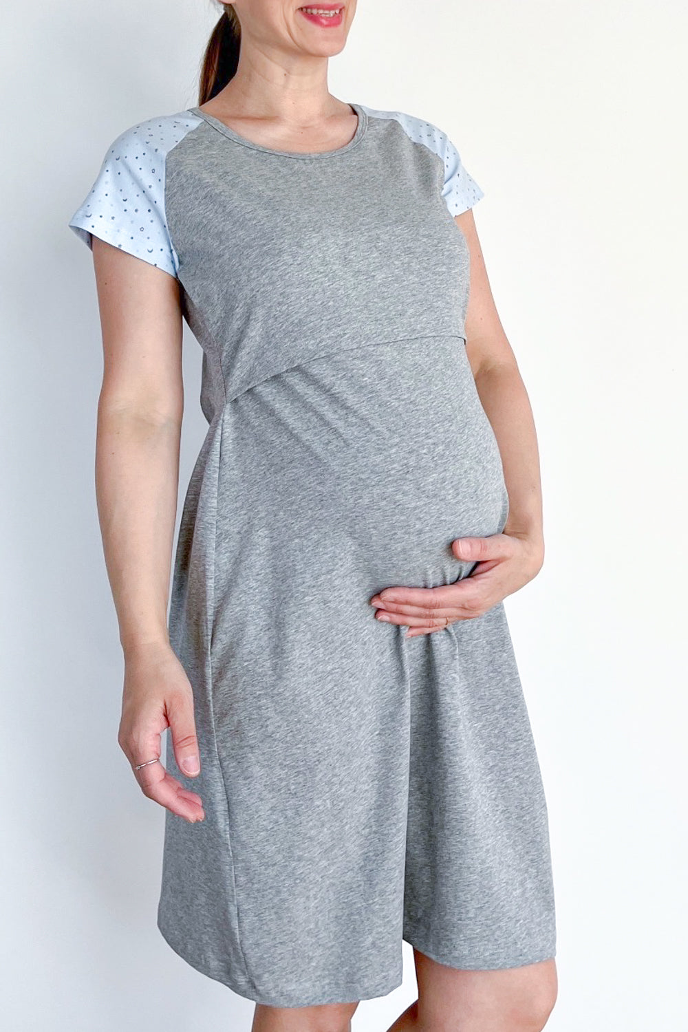 Spalna srajca za nosečnost in dojenje - svetlo modra s potiskom