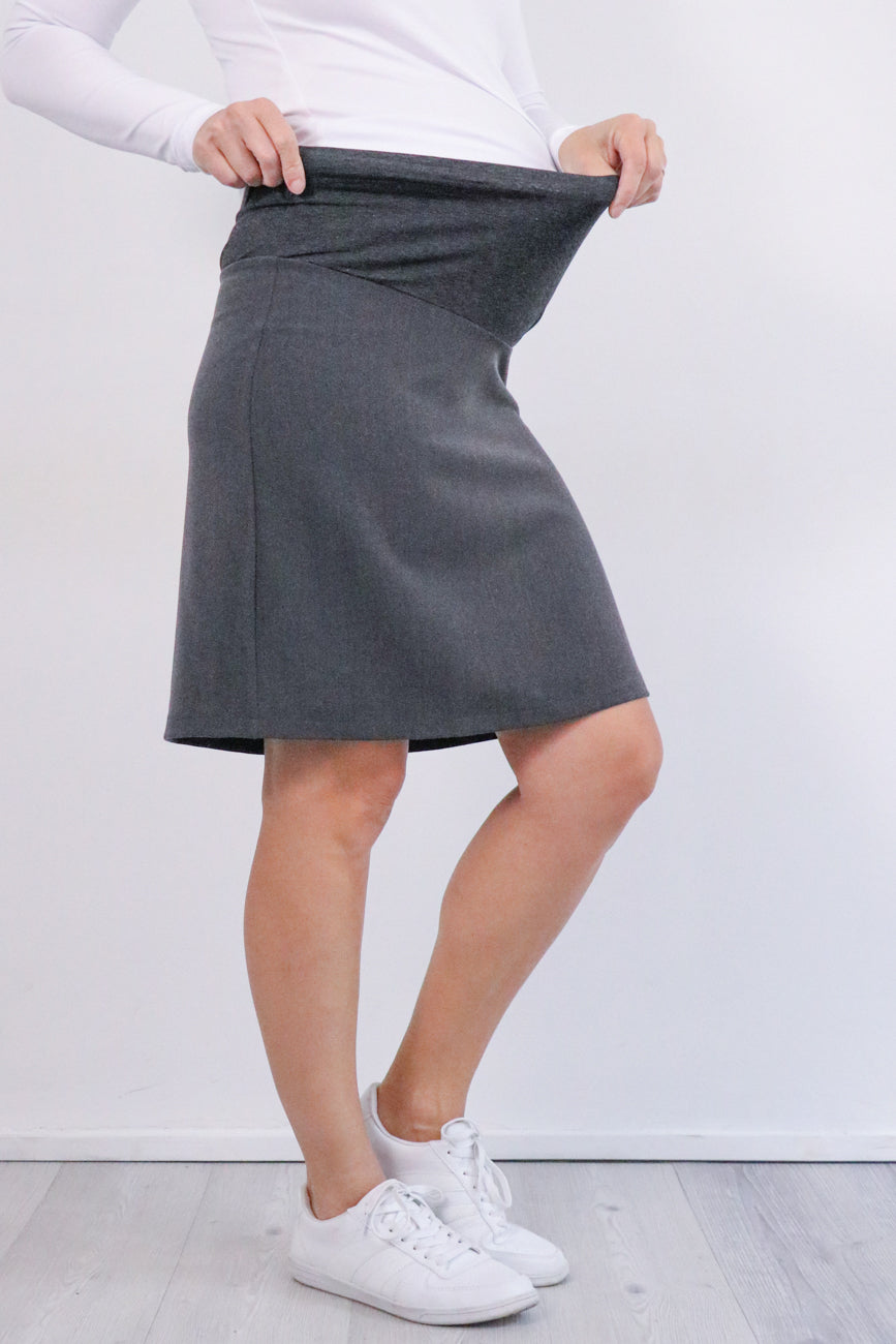 Nosečniško krilo je izdelano iz elegantnega, malo elastičnega in mehkega materiala. Je ravnega kroja in sega do nad koleni. Ima všit pas iz mehkega in elastičenga bombaža, ki raste s trebuščkom. Nosečniško krilo je primerno za v službo, posebno priložnost ali vsakdanje opravke. Lepo se kombinira na elegatne čevlje ali superge.