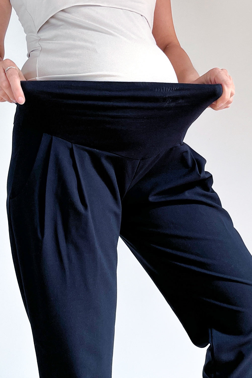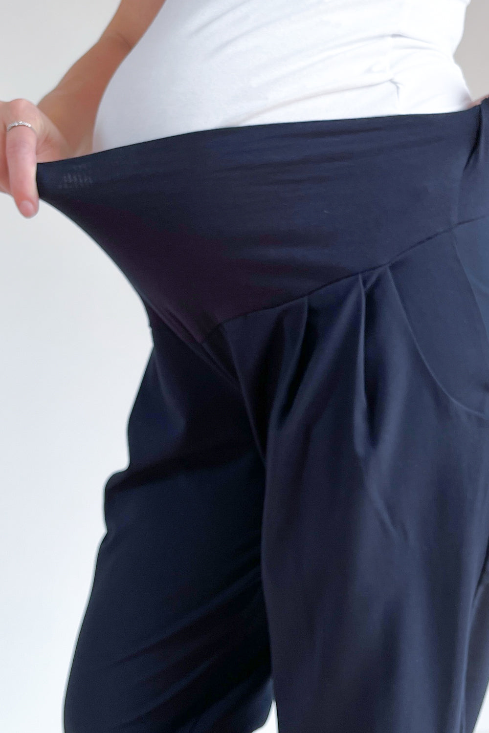Elegantne nosečniške hlače z gubami - temno modre