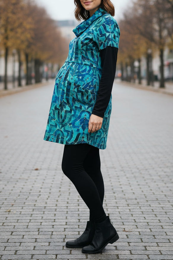 Pulover/tunika za nosečnost in dojenje z žepi - Turkiz
