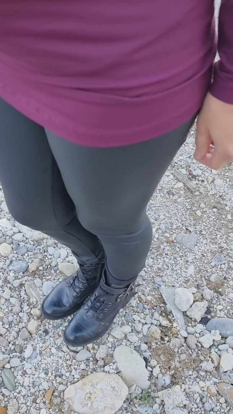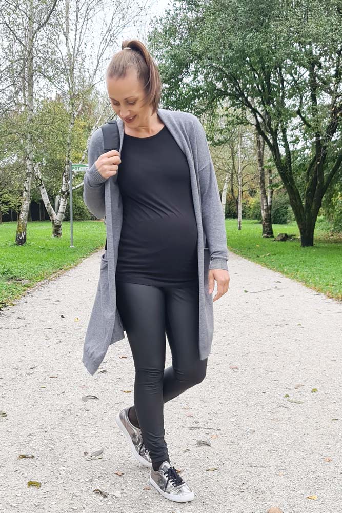 Nosečniške termo pajkice v videzu usnja so elastične in prijetne na otip. Zgornji del pajkic, ki sega čez trebušek, je sešit iz elastičnega bombaža, ki lepo raste s trebuščkom. Na notranji strani so nežno kosmatene in mehke, zunanji del je gladek v videzu mat usnja. Pajkice so zelo tople in malce tudi nepremočljive - super za deževne dni ali sprehod po snegu.